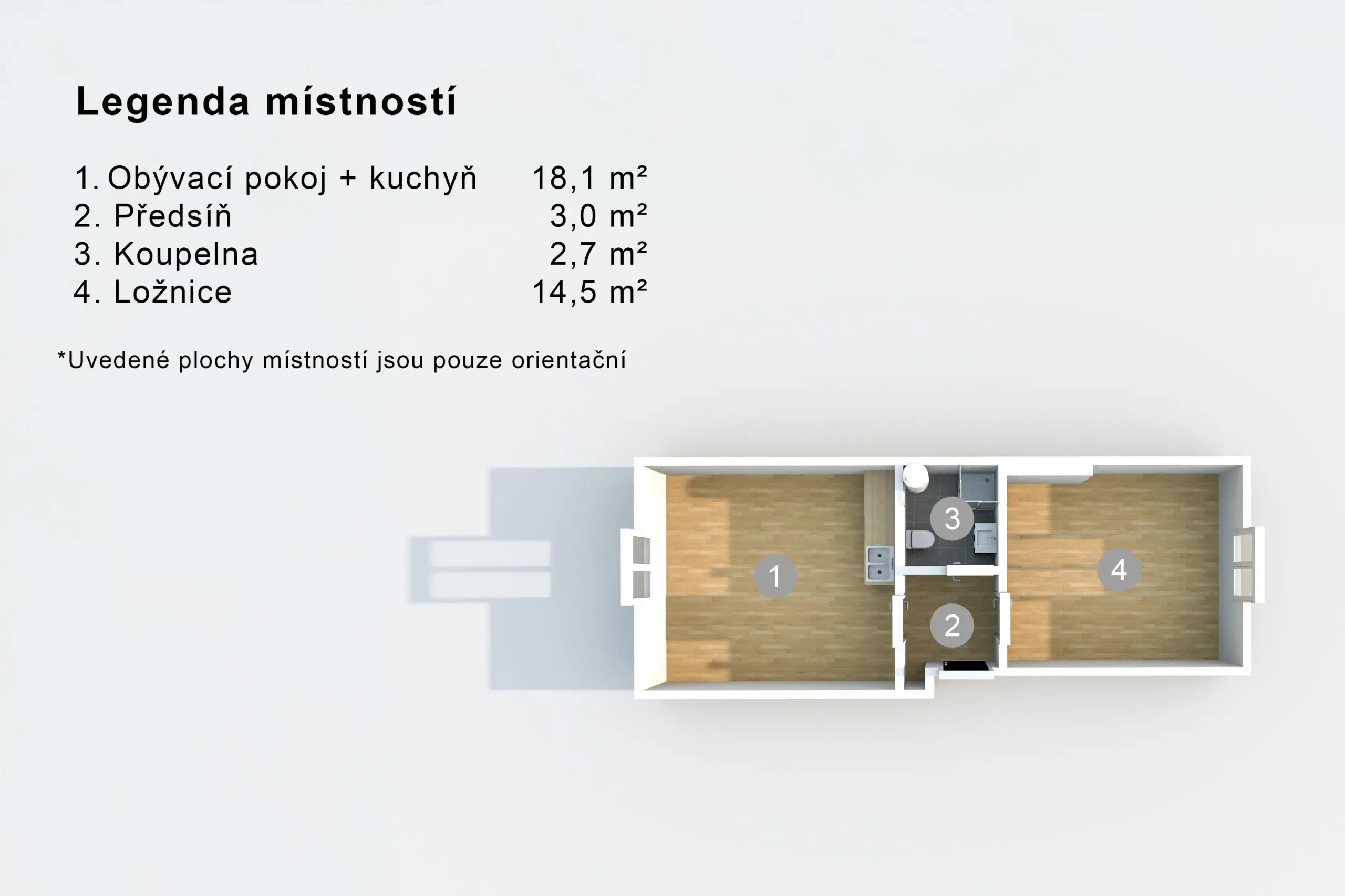 ✅ Světlý a vzdušný byt – díky vyššímu podlaží, čerstvé světlé výmalbě a orientaci má byt dostatek denního světla.