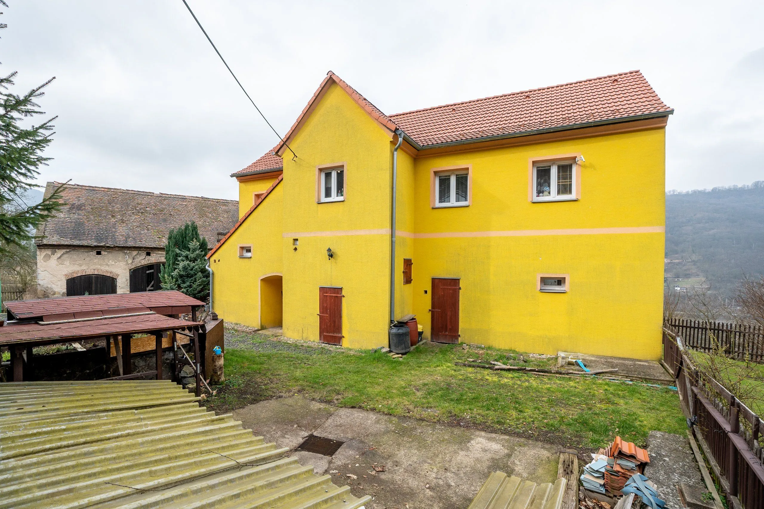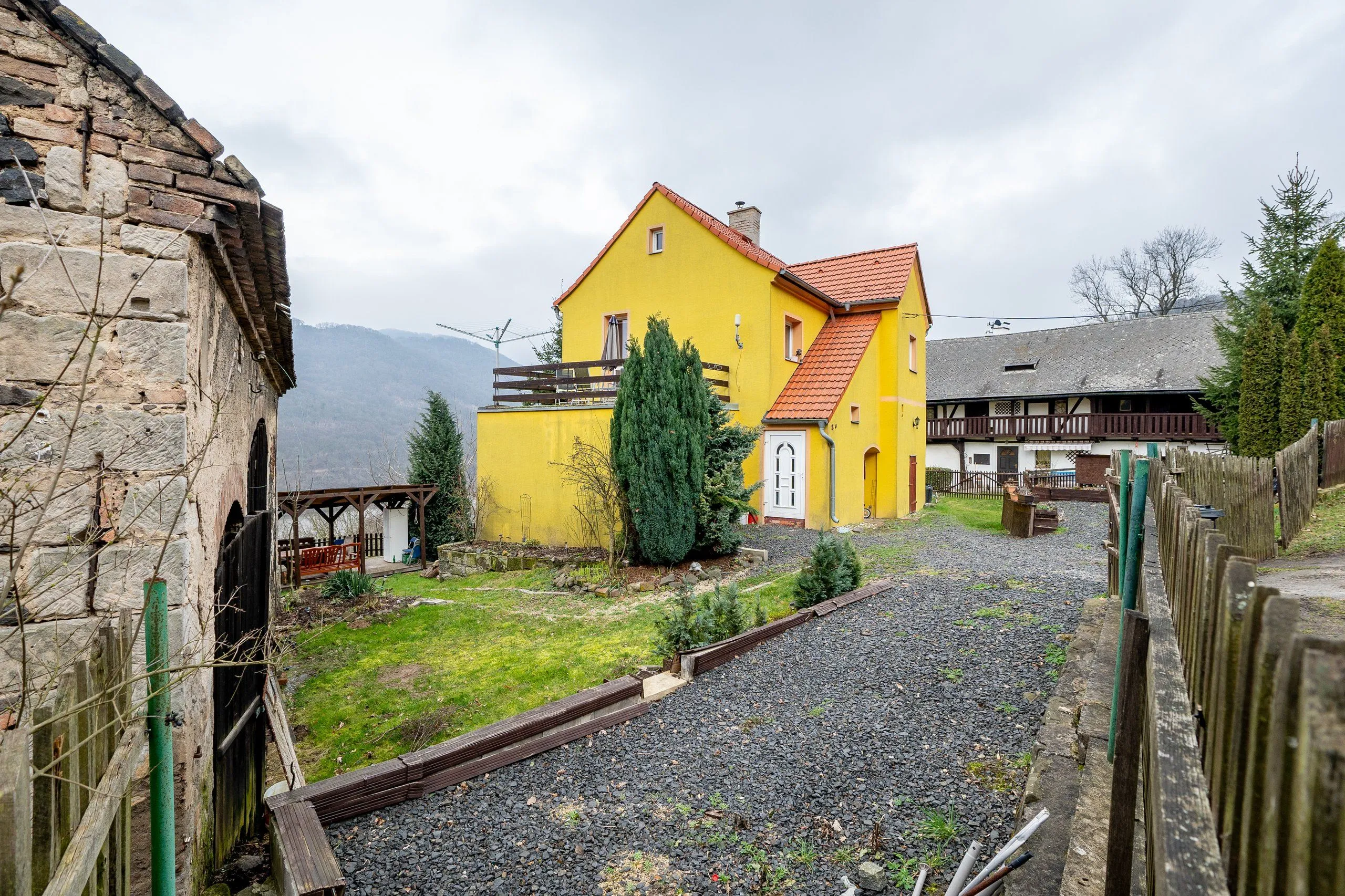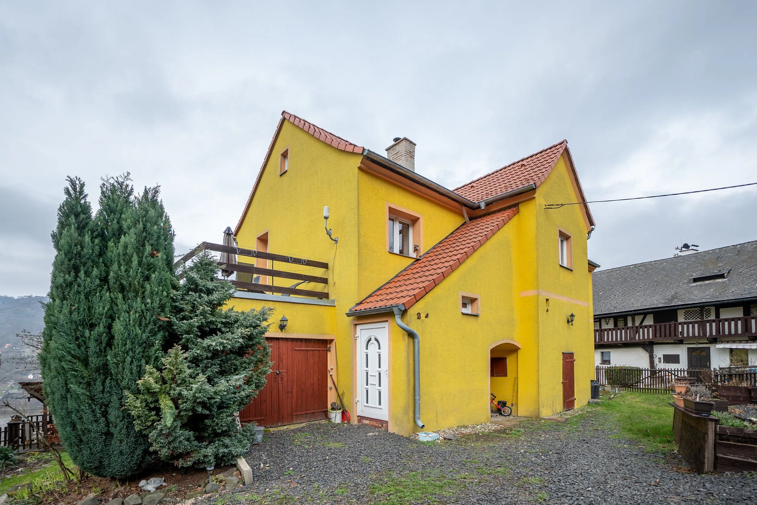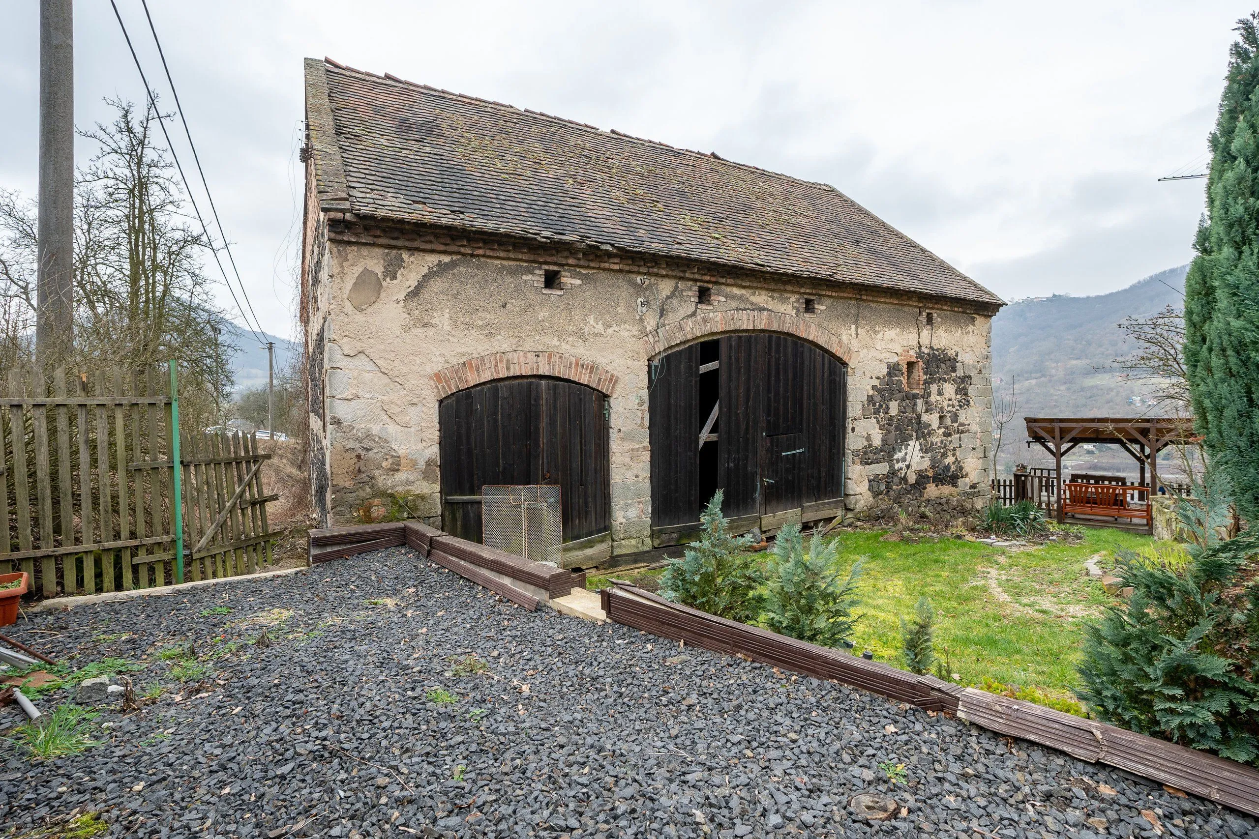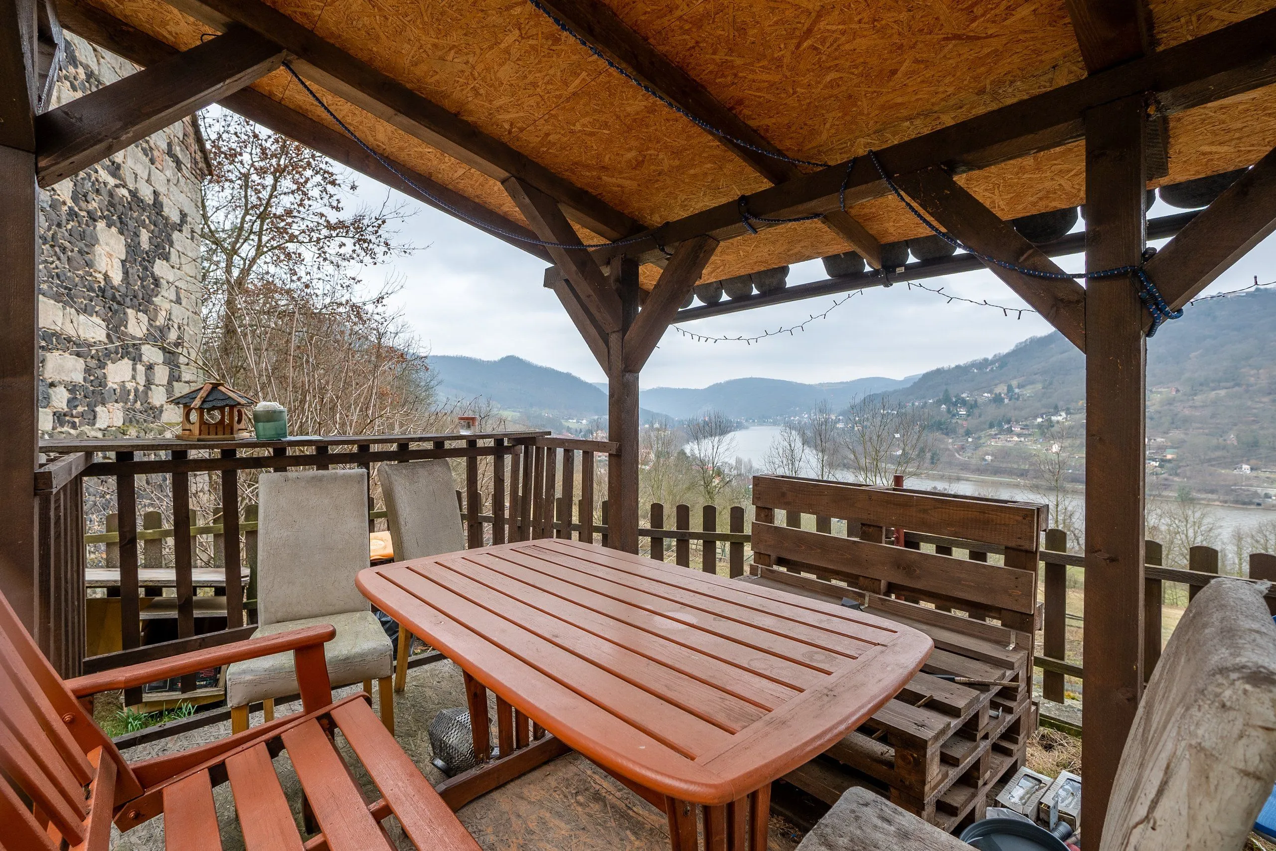 Ovšem kouzlo tohoto domu nekončí u jeho stěn. Na rozsáhlém pozemku najdete malebný altánek s dokonale umístěným posezením, kde můžete relaxovat a obdivovat působivý výhled na protilehlá panoramata a řeku Labe.