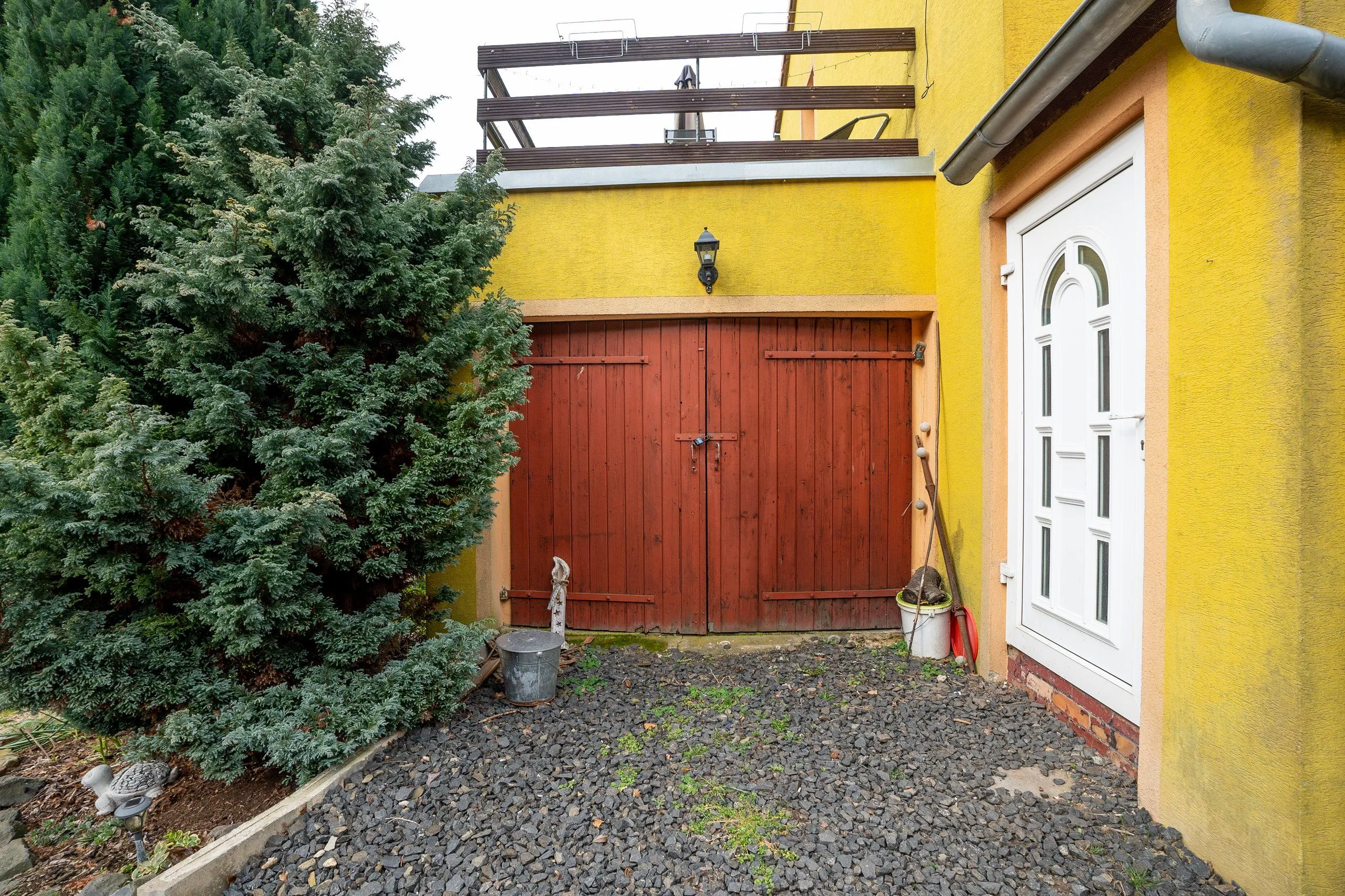 Pod terasou je umístěna prostorná garáž, ideální místo pro ochranu vašeho vozidla. Pro návštěvy jsou k dispozici dvě pohodlná parkovací stání přímo u domu.